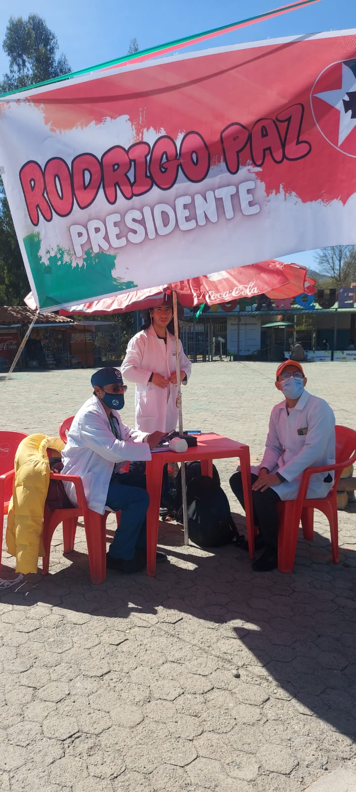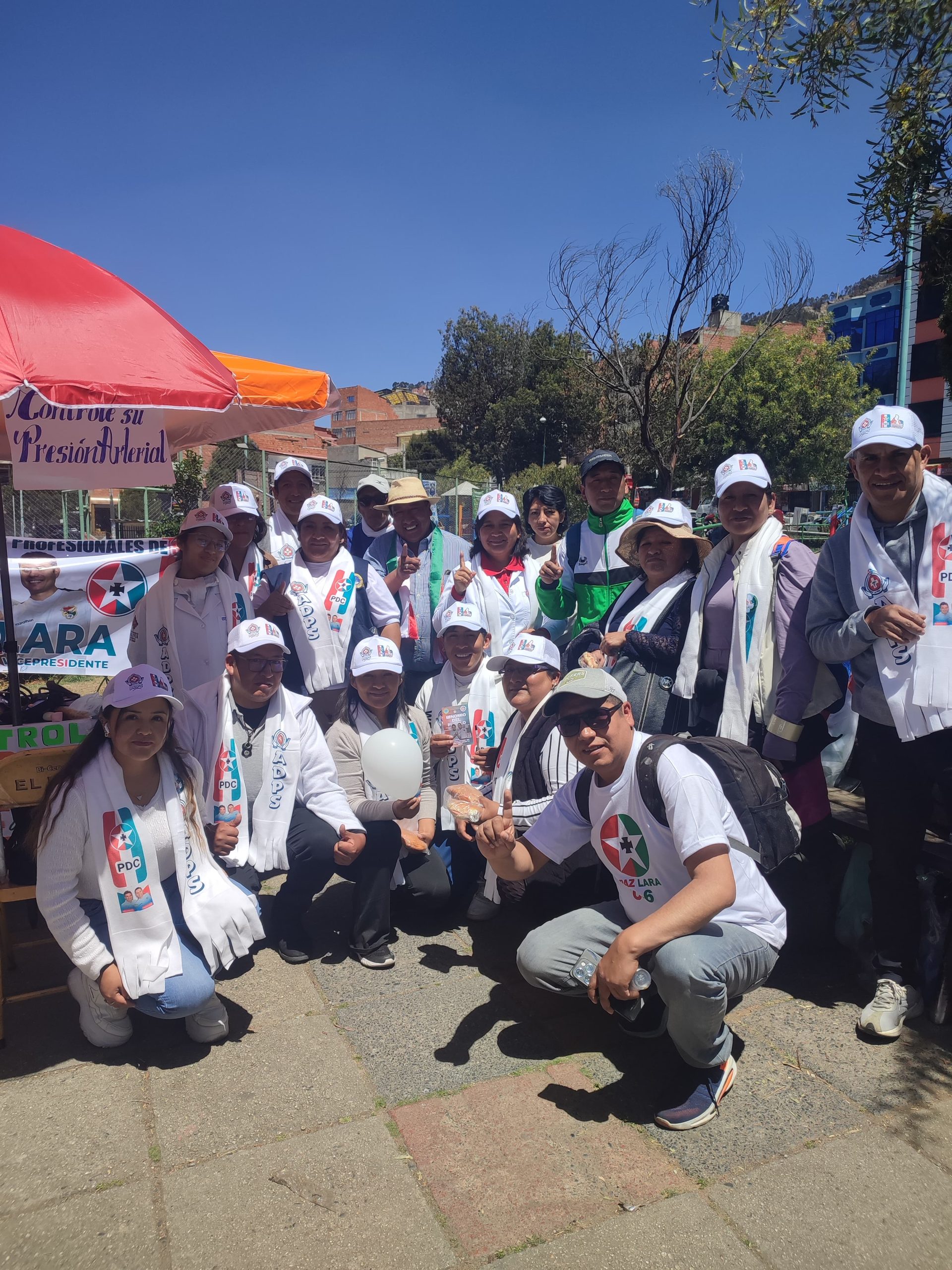 En el marco de la campaña electoral el Partido Demócrata Cristiano (PDC) instaló un puesto de salud en inmediaciones de la plaza Villarroel en la zona de Miraflores, en la ciudad de La Paz, para brindar servicios de salud básicos y gratuitos a los vecinos de esta zona.